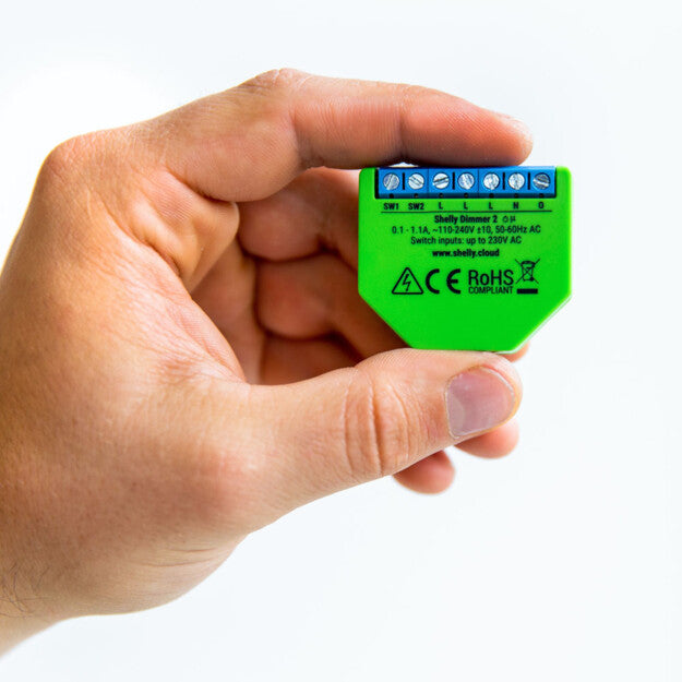 Lo Shelly Dimmer 2 è un dispositivo Wi-Fi per il controllo di luci alogene, LED e trasformatori ferromagnetici dimmerabili, supportati da un'alimentazione di 110-230V.