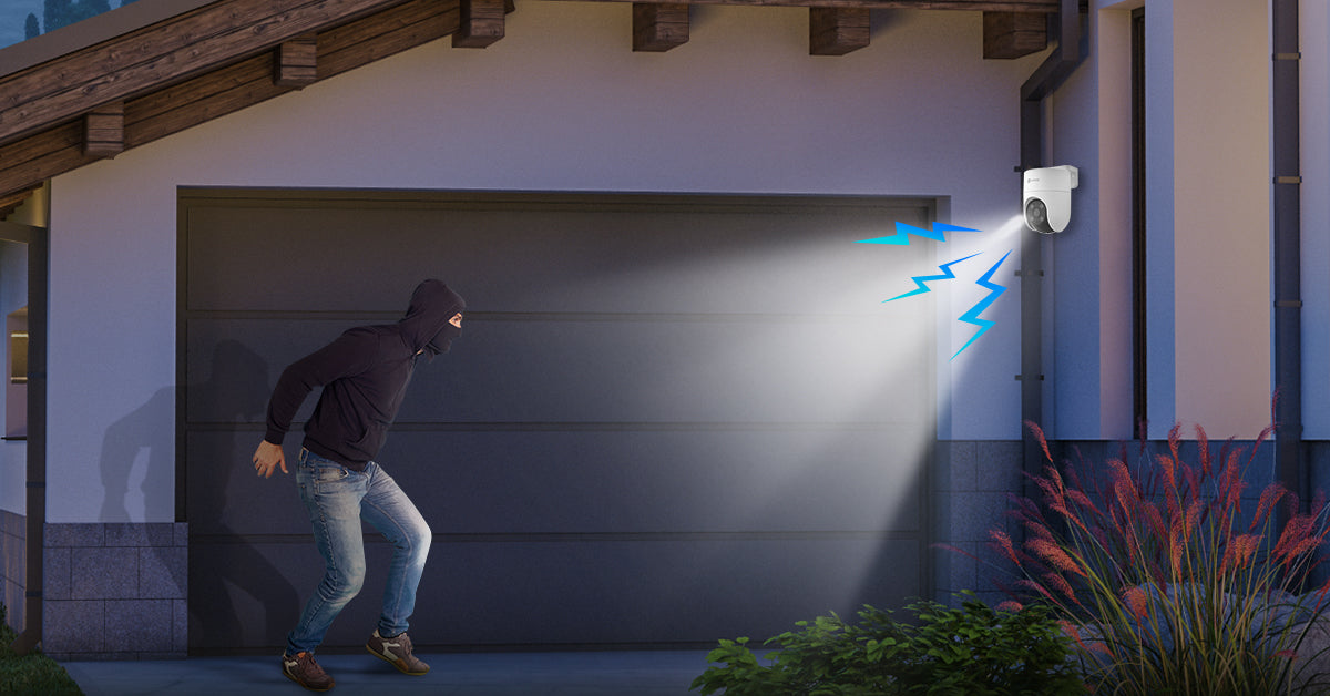 • Difesa attiva integrata – Sirena potente e doppi faretti lampeggianti si attivano per spaventare gli intrusi.