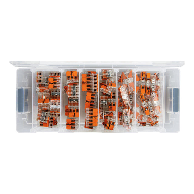 Questo esclusivo assortimento include 93 pezzi della rivoluzionaria Serie 221, offrendo tutto il necessario per cablaggi rapidi e sicuri ovunque ci si trovi.