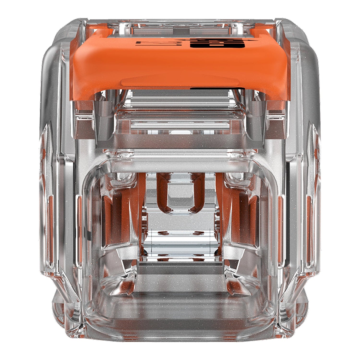 Proprio come la versione classica della Serie 221, sfrutta la comodità della tecnologia a leva: basta alzare le levette arancioni, inserire i capi dei due fili precedentemente spelati e richiuderle per ottenere una tenuta formidabile senza l'uso di cacciaviti o nastro isolante.