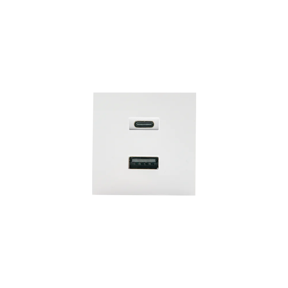 Il Shelly USB Charger è un adattatore compatto che aggiunge funzionalità di ricarica al Shelly Wall Display Stand, offrendo una soluzione elegante e integrata per alimentare dispositivi tramite porta USB-C o USB-A.