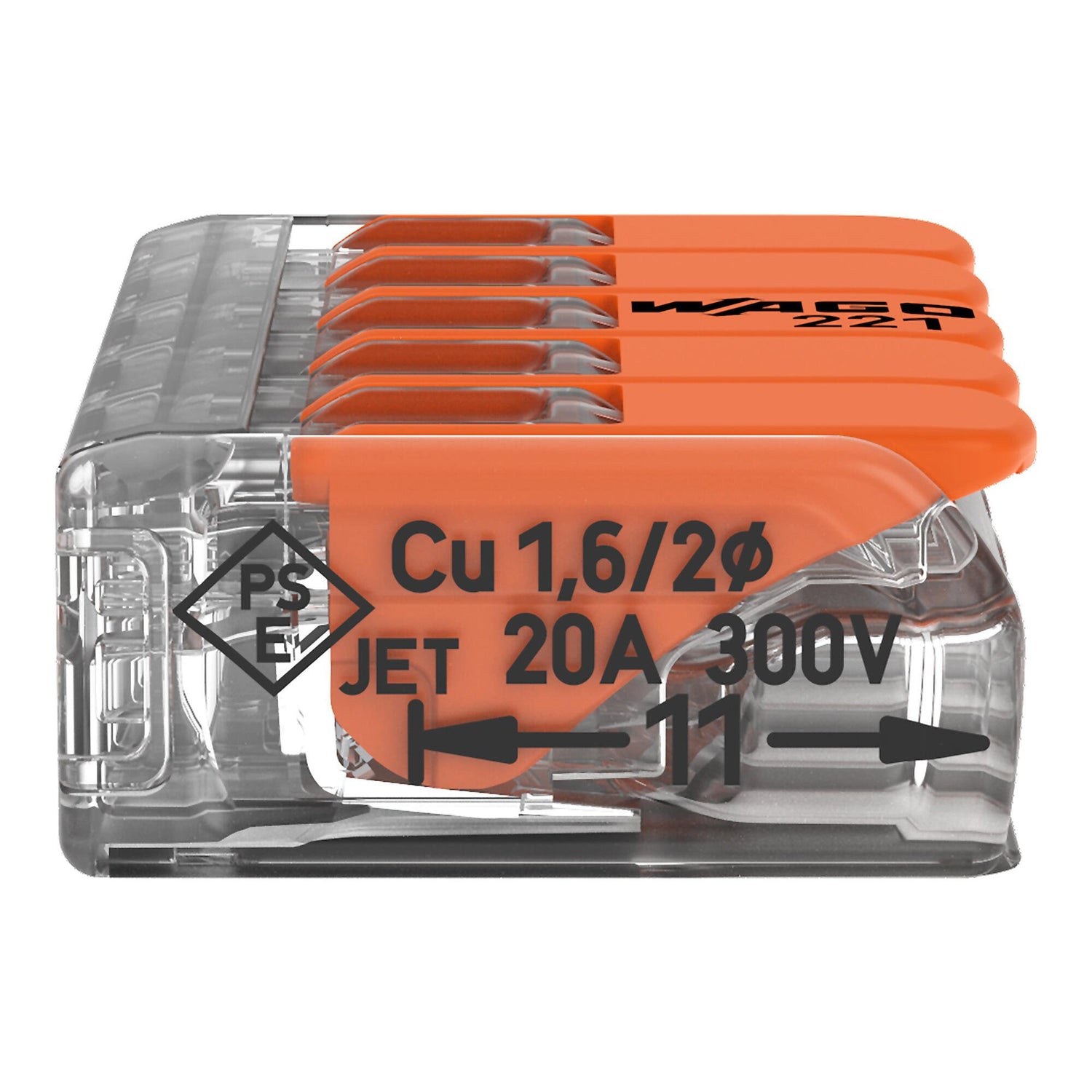Moltiplica le tue connessioni con WAGO 221-415 a 5 poli: il morsetto universale a leva definitivo per derivazioni multiple e cablaggi complessi fino a 4 mm², nel minimo spazio possibile.